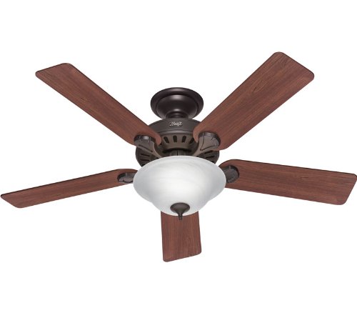 Sale Hunter 28721 Five Minute - 52 Ceiling Fan, New Bronze Finish with Dark Cherry/Medium Oak Blade Finish with Frosted Glass